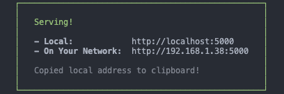 Your files will now be available if you go to the following address in your browser http://localhost:5000.